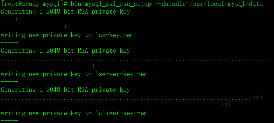 [root@study mysql]# bin/mysql_ssl_rsa_setup --datadir=/usr/local/mysql/data