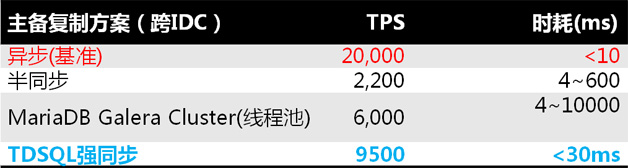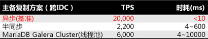 目前来看,Galera是一套相当完美的方案。但是,在跨IDC的性能测试中,其性能下降比较大,另外,实现方案也比较复杂,目前对它的代码理解还不够透彻,所以暂时没有在计费领域大范围推广使用。但我相信这个方向是对的,有吸引力的,随着后续Galera越来越完善,我们对它研究得越透彻,也许有一天会采用这套方案。 【性能测试和分析】 上面的三种复制模式对比测试,数据如图6所示。
