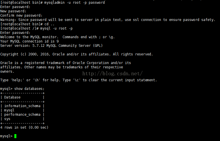 重新使用cd /bin命令进入到bin目录下输入mysqladmin -u root -p password