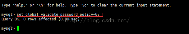 重新再次登录数据库后,输入set global validate_password_policy=0;修改密码规则等级,该等级是最低等级。