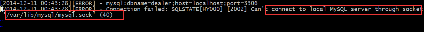 当php连接mysql时如果是本地连接(127.0.0.1 或 localhost )时,会用到 pdo_mysql.default_socket= 参数(如果是pdo连接数据库), [Pdo_mysql] ; If mysqlnd is used: Number of cache slots for the internal result set cache ; http://php.net/pdo_mysql.cache_size pdo_mysql.cache_size = 2000 ; Default socket name for local MySQL connects. If empty, uses the built-in ; MySQL defaults. ; http://php.net/pdo_mysql.default-socket pdo_mysql.default_socket=