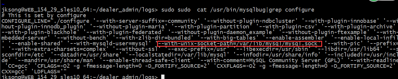 #查看编译参数 sudo cat /usr/local/mysql/bin/mysqlbug|grep configure