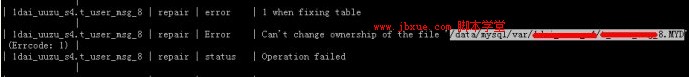 mysql repair 报错: Can't change ownership of the file '/data/mysql/var/xxxxx/xxxxxx.MYI'