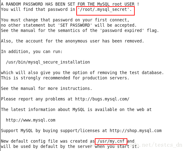 A random root password has been set. You will find it in '/root/.mysql_secret'.