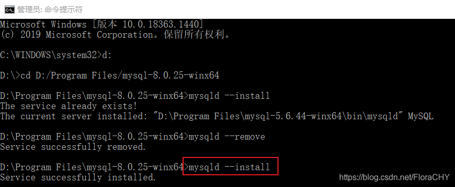 如果需要卸载,使用命令mysqld --remove