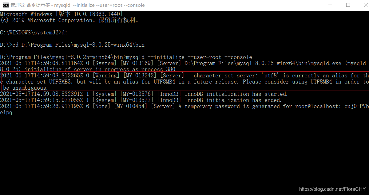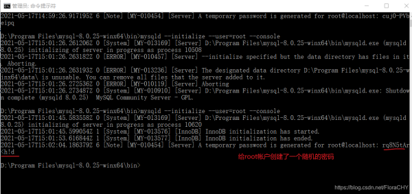 执行命令:mysqld --initialize --user=root --console