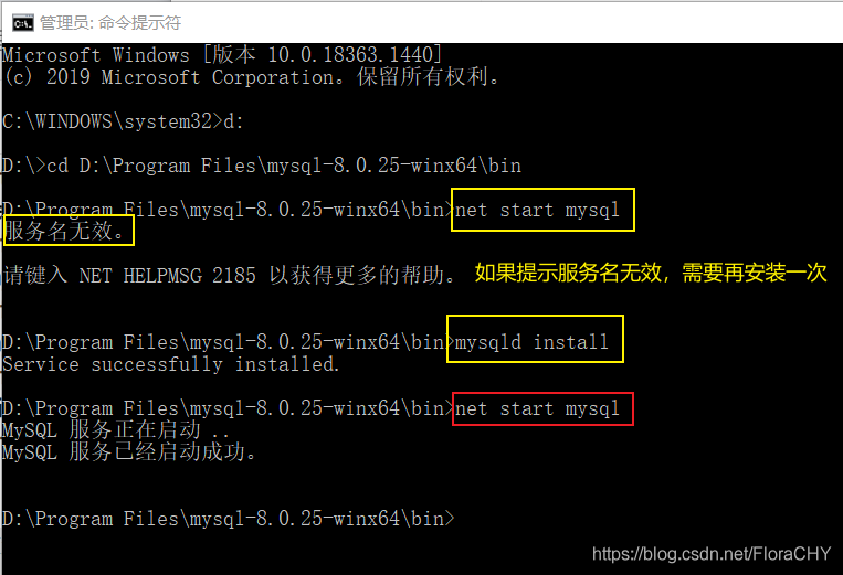 以管理员身份运行cmd,进入mysql的bin目录
