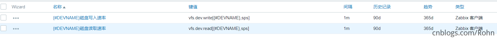 其中当键值为vfs.dev.read[] 和 vfs.dev.write[] 时允许使用 {#devname} 宏。