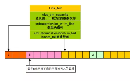 3.写入log buffer后,再将start_lsn->end_lsn的范围标记到link_buf(注意:因为只在start_lsn%capacity的位置标记link_buf,所以即使end_lsn超过(m_tail, m_tail+m_capacity)也不影响);