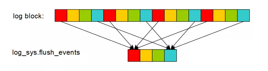 用户提交事务时,会根据innodb_flush_log_at_trx_commit参数,调用log_wait_for_write或log_wait_for_flush,来等待redo log写入到系统缓存或刷到硬盘。用户线程的通知是通过log_sys.flush_events事件数组来实现的,为了避免一次通知的flush_events过多,flush_events会像桶一样划分给不同的用户线程:redo log是以一个个log block划分的,假设log_sys.flush_events数组长度为m,则第n个log block的刷盘,由flush_events[n%m]事件监听。当log buffer的第l1个log block到第l2个log block被刷盘时,会设置l1-l2之间的log block所属的flush_events,从而redo log在l1-l2之间的用户线程都会收到通知。