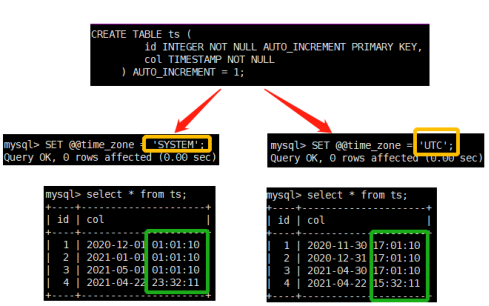 mysql将timestamp值从当前时区转换为utc进行存储,并从utc返回到当前时区进行检索。