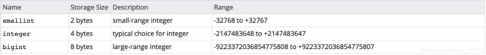 pg整数类型: