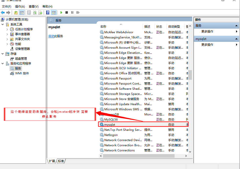 右键我的电脑 —管理—服务和应用程序—服务—mysqlzt—停止