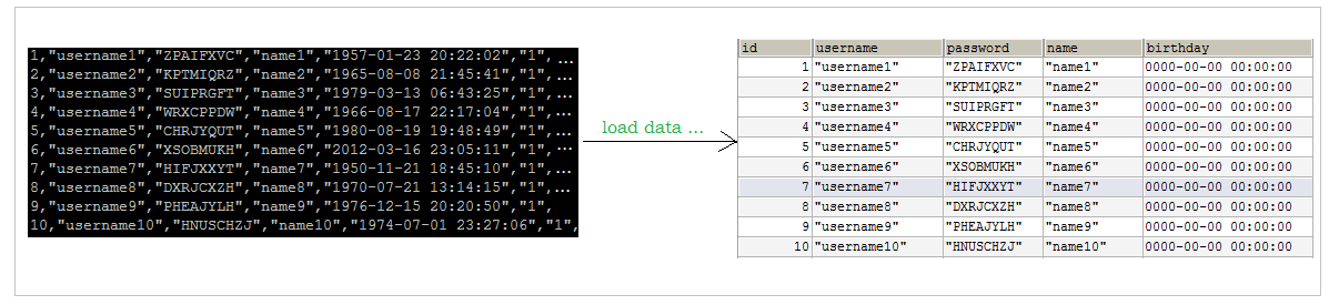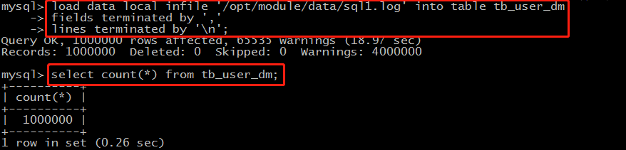 load data local infile '/opt/module/data/sql1.log' into table tb_user_dm