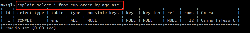 explain select * from emp order by age asc;