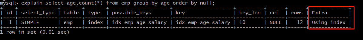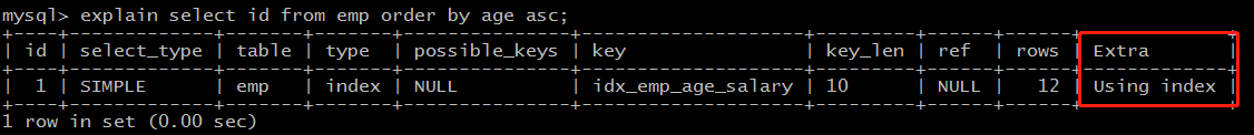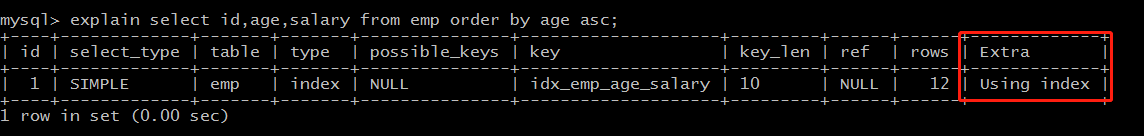 这种情况即为 using index,不需要额外排序,操作效率高。