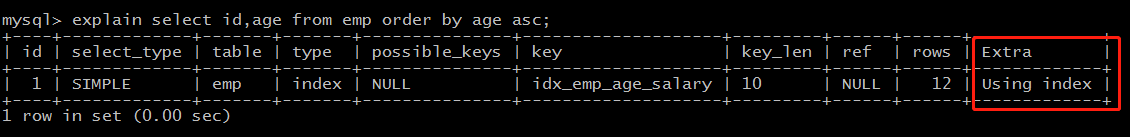explain select id,age,salary from emp order by age,salary;