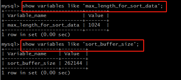 show variables like 'max_length_for_sort_data';