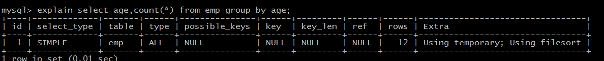 explain select age,count(*) from emp group by age;