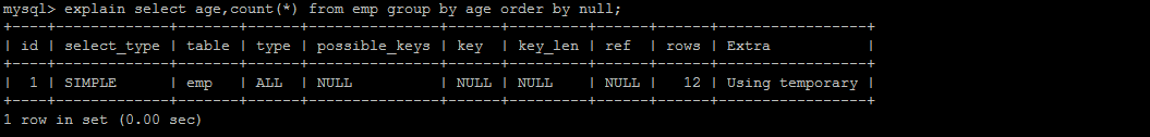 explain select age,count(*) from emp group by age order by null;