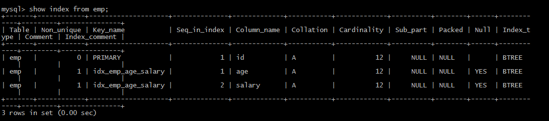create index idx_emp_age_salary on emp(age,salary);