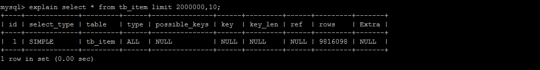 一般分页查询时,通过创建覆盖索引能够比较好地提高性能。一个常见又非常头疼的问题就是 limit 2000000,10 ,此时需要MySQL排序前2000010 记录,仅仅返回2000000 - 2000010 的记录,其他记录丢弃,查询排序的代价非常大 。