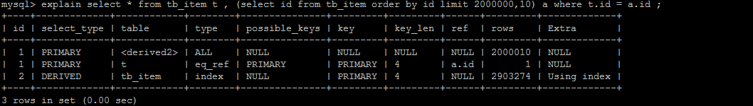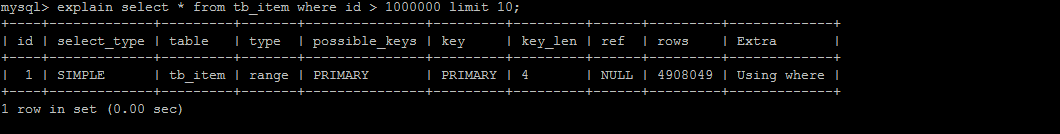 UNION 语句的 type 值为 ref,OR 语句的 type 值为 range,可以看到这是一个很明显的差距- UNION 语句的 ref 值为 const,OR 语句的 type 值为 null,const 表示是常量值引用,非常快