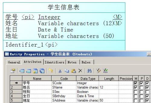点击“确定”按钮以后,就产生了对应“SQL Server 2005”数据库的表、属性、关系的具体实现。