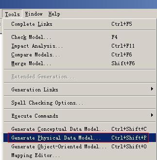 选择“Tools”-->“Generate Physical DataModel…”即可。