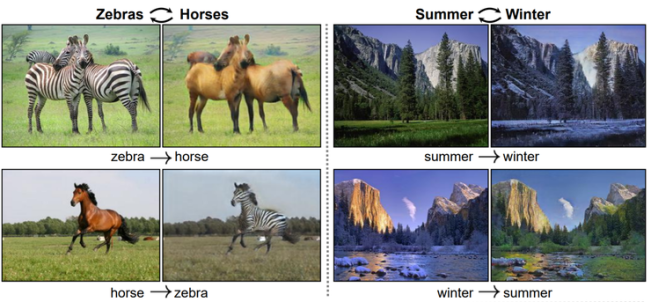 Cycle GAN 可以说是所有人脸转换尝试重要早期尝试。在对抗性生成式网络(GANs)的风潮中,大家发现只要给定源类别的样本和目标类别的样本,GANs 可以便捷地学习到两个类别之间的转换关系,就天然地适用于「图像到图像转换」问题,比如同一张风景照的冬天到夏天、一匹马到一匹斑马;Cycle GAN 核心思路在于,如果能从源转换到目标、还能从源转换回来,就可以认为模型很好地学习到了两个类别间的转换关系,也更好地保证了转换后的图像的品质。不过 Cycle GAN 的换脸效果并不怎么好,它毕竟是一个对所有类别的图像通用的方法。