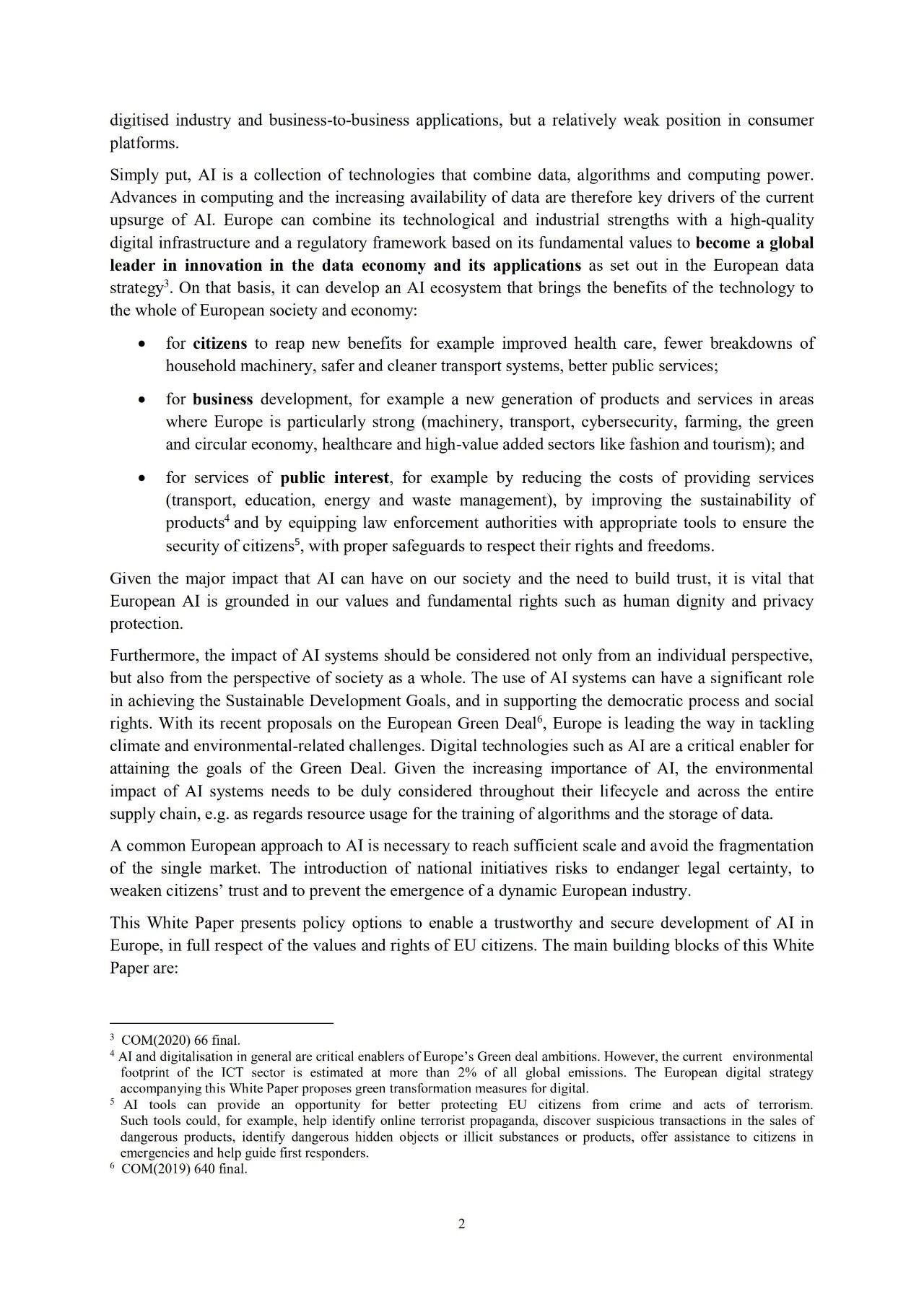 白皮书指出,人工智能 (AI) 是一项战略性技术,有益于社会、公司和个人。AI以人为本,基于道德,可持续发展,尊重最基本的权利和价值。AI带来的效率和生产率不仅能够提升欧洲的产业竞争力,提升人们的生活福祉,还能够有效应对气候变化、环境退化、人口变化、民主权益、社会犯罪等一些急迫解决的社会问题。