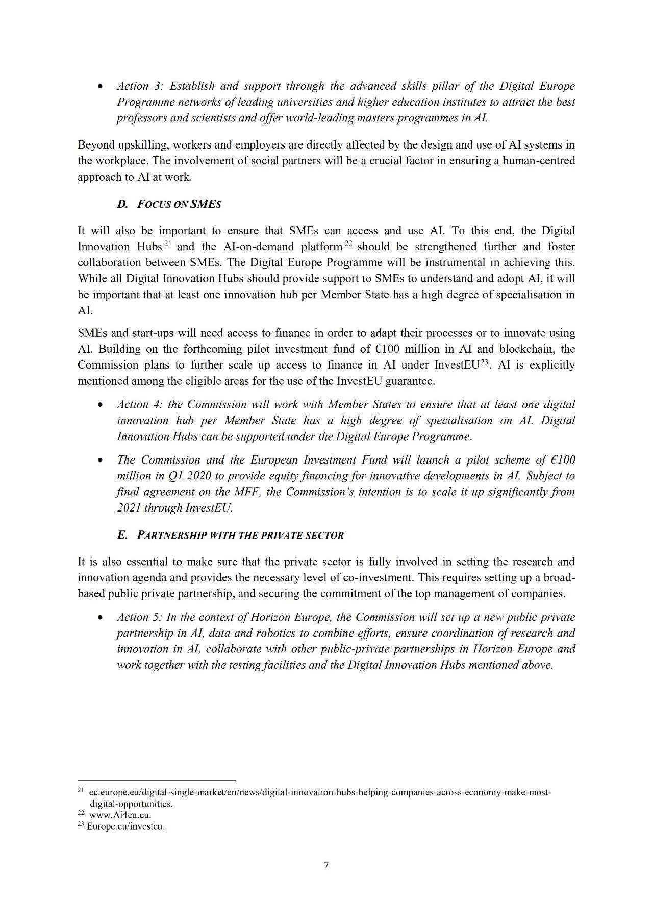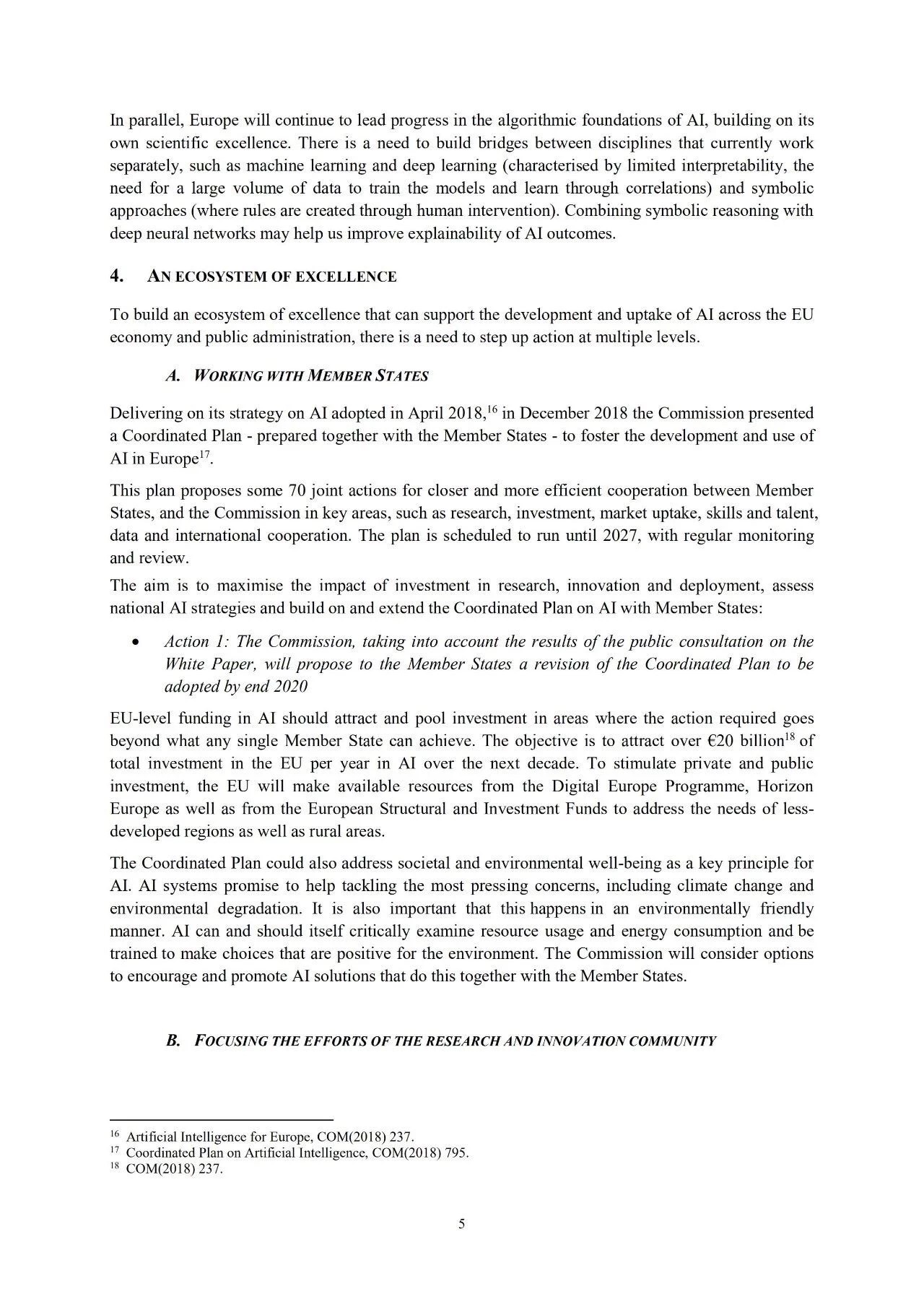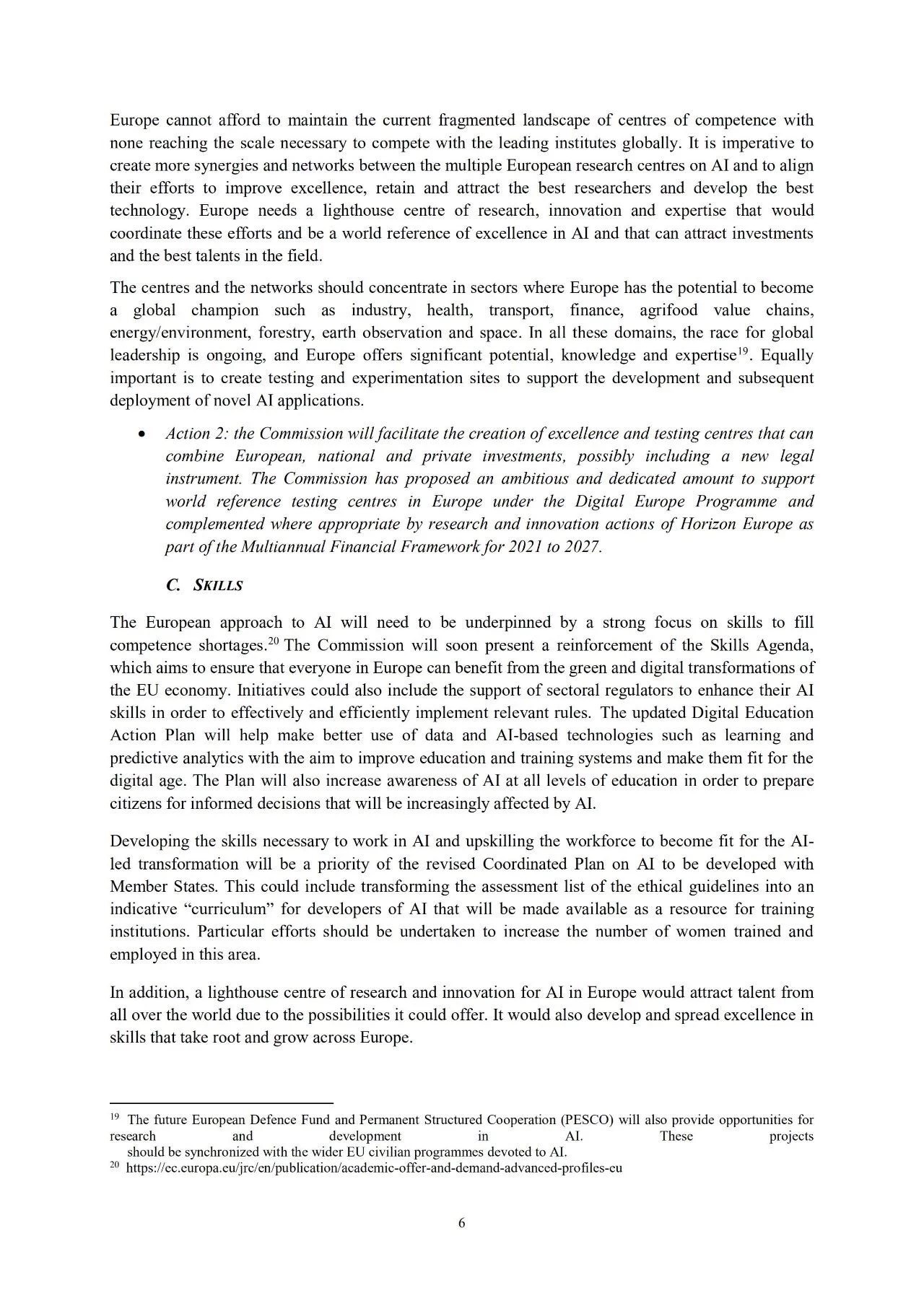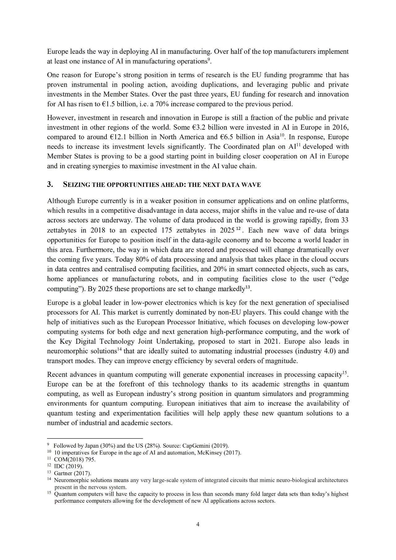 然而,欧洲的AI投入在世界也仅占一小部分。2016年,欧洲用于AI的投入为32亿欧元。北美为121亿欧元。亚洲为65亿欧元。作为回应,欧洲需要大幅度提高AI研究和创新领域投资水平。目标是在未来10年,欧盟资金每年在成员国范围内吸引200亿欧元的AI技术研发和应用资金。