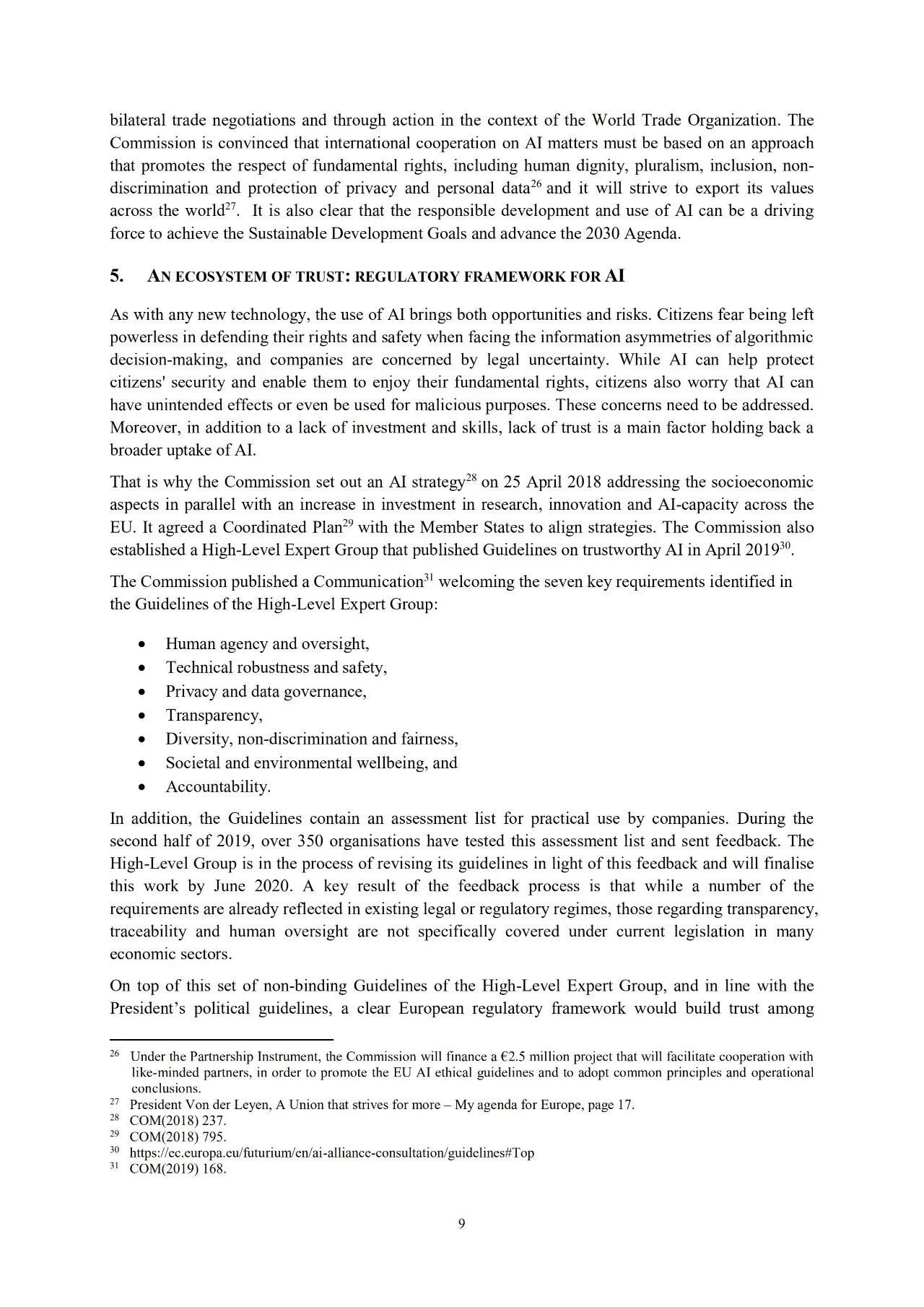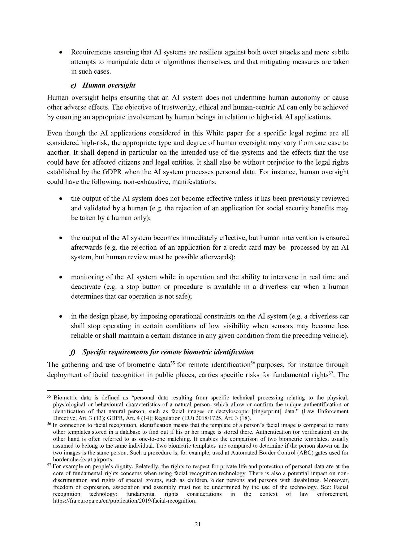 二、“信任生态系统”。它是欧洲AI未来监管框架的关键要素。要做到这一点,必须确保体系遵守欧盟的规则,包括保护基本权利和消费者权利,尤其是那些在欧盟运行的、风险较高的AI系统。这个政策为市民使用AI应用增添了信心,为企业和公共组织的AI创新提供了法律保障。欧洲委员会强烈赞同“以人为本”。