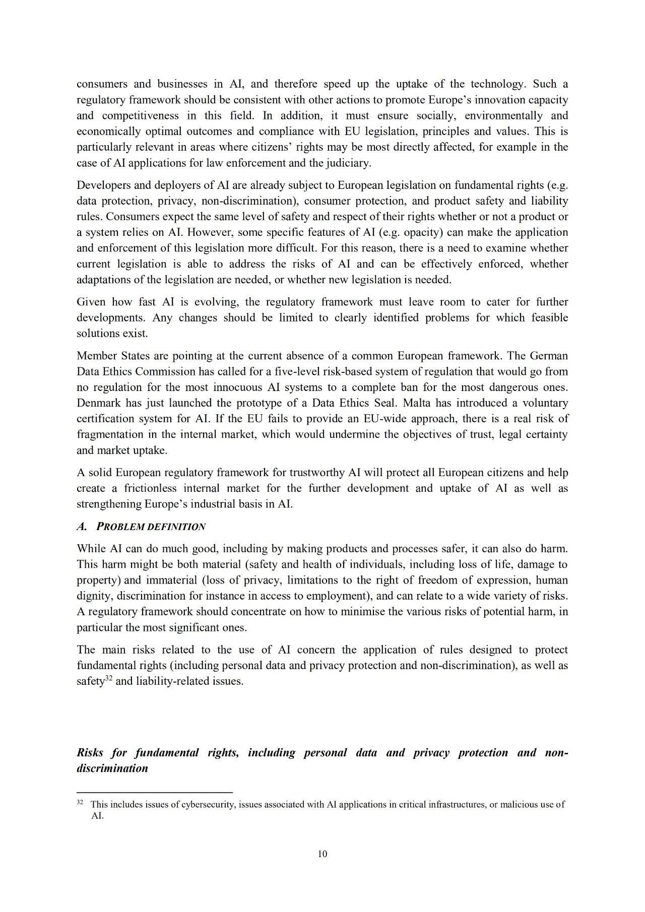 欧盟委员会支持的这项投资导向的监管路径有着双重目标:一是推动AI进步;二是应对在使用AI过程中产生的相关风险。欧洲AI路径旨在提升欧洲在AI领域的创新能力,同时提升贯穿欧盟经济的道德性和可靠性。AI应该服务于人类生活福祉的提升和社会更好的发展。