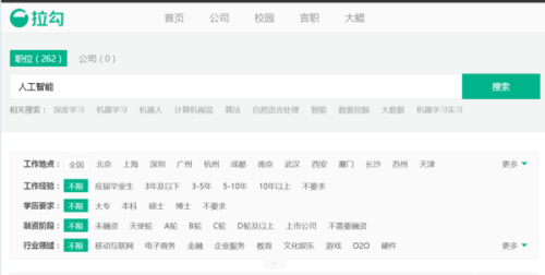 各大网站都有的,我们也是做人工智能的,一般我们倾向于拉钩和boss直聘。这两个相对来说质量比较的高。