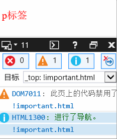 p { color:red !important; }/* 设置了优先级 */这个时候就可以显示为红色了:
