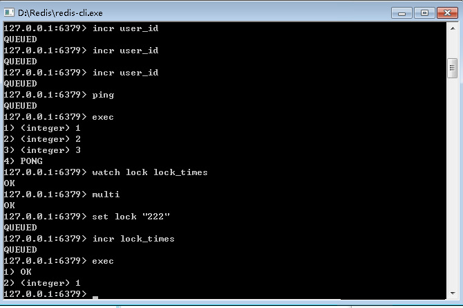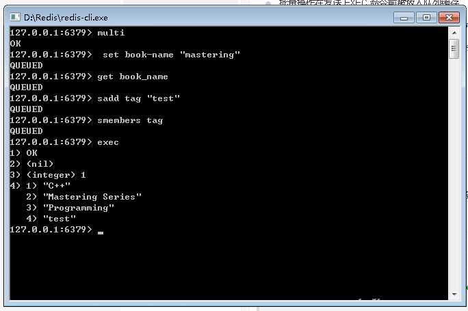 批量的命令在Exec命令之前,事务中任意命令执行失败,其余的命令依然被执行。在事务执行过程,其他客户端提交的命令请求不会插入到事务执行命令序列中。