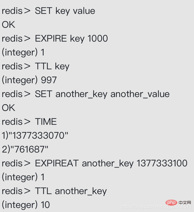 - EXPIRE<key><ttl>命令用于将键key的生存时间设置为ttl秒。