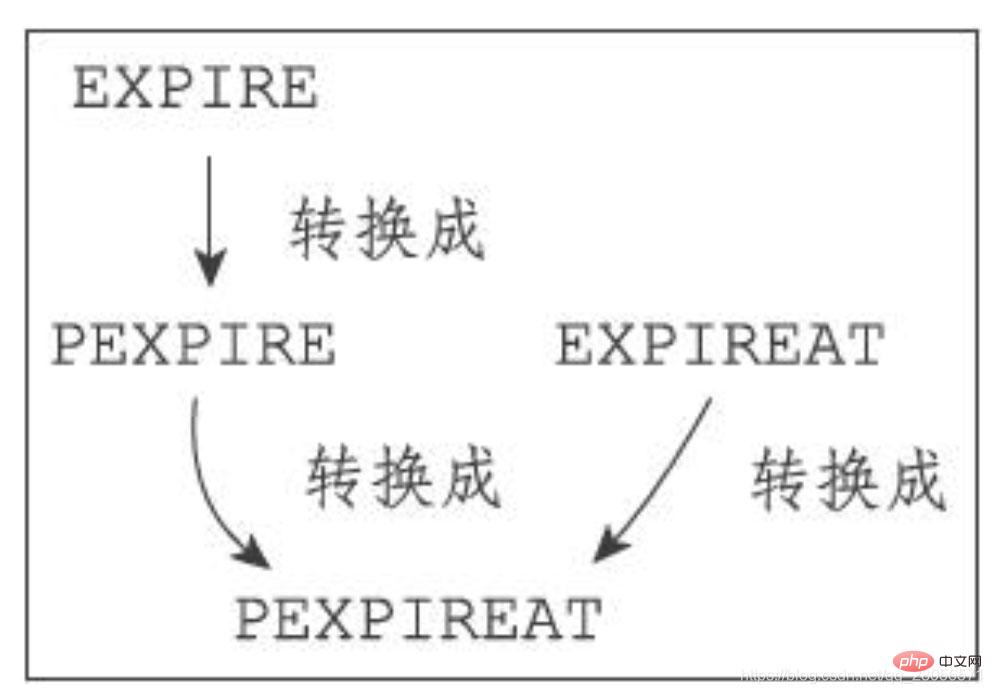 虽然有多种不同单位和不同形式的设置命令,但实际上EXPIRE、PEXPIRE、EXPIREAT三个命令都是使用PEXPIREAT命令来实现的: