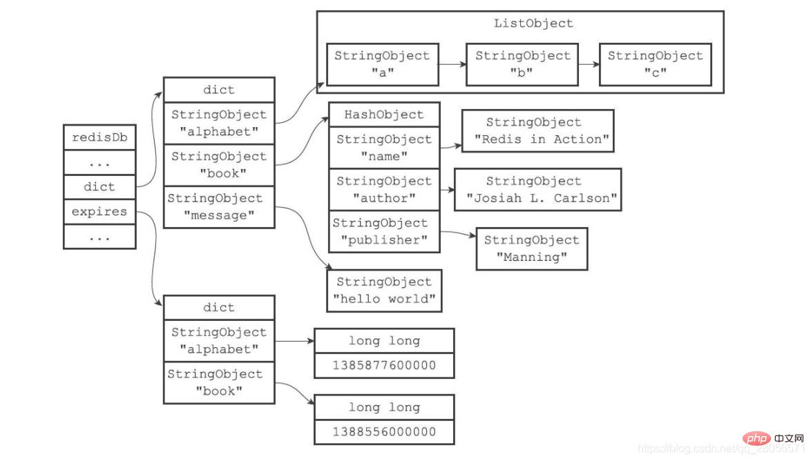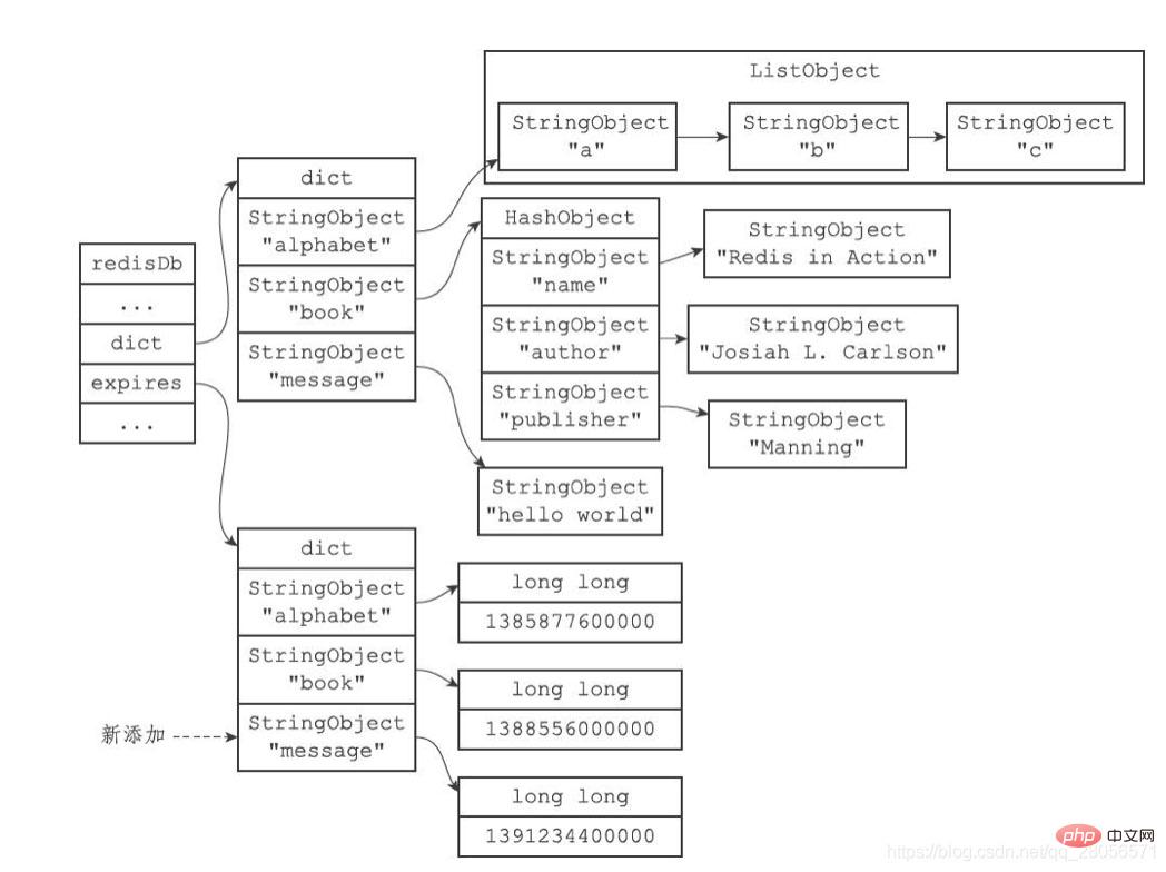 为了展示方便,图中的键空间和过期字典中重复出现了两次alphabet键对象和book键对象。在实际中,键空间的键和过期字典的键都指向同一个键对象,所以不会出现任何重复对象,也不会浪费任何空间。