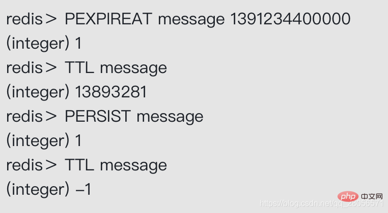 PERSIST命令就是PEXPIREAT命令的反操作:PERSIST命令在过期字典中查找给定的键,并解除键和值(过期时间)在过期字典中的关联。